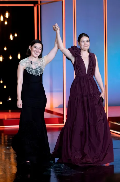 Filmmaker Alina Grigore (r) collects the Golden Shell at the closing gala of the San Sebastian International Film Festival on September 25, 2021, in San Sebastian, Basque Country, Spain. Romanian filmmaker Alina Grigore has won the Golden Shell at the 69th San Sebastian International Film Festival for her film 'Blue Moon'. The director said that "this award is a tribute to artists who want to talk about and express female creativity and creativity in general".