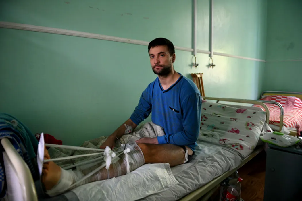Bărbat rănit în explozia unei bombe cu fragmentare. Sursa: Amnesty International