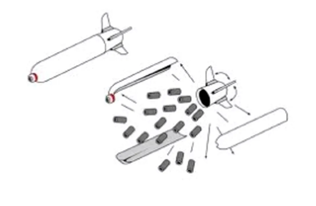Bombă cu fragmentare (muniție cu dispersie). Sursa: (Cluster Munitions Coalition