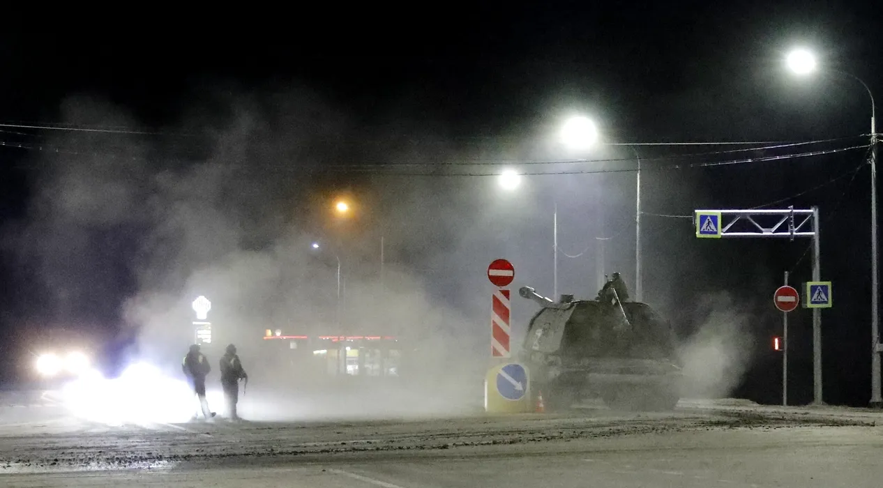 8125729 24.02.2022 An armoured vehicle with the letter 'Z' on it, drives along a road near the border between Russia and Ukraine in Belgorod region, Russia. On February 24 Russian President Vladimir Putin announced a military operation in Ukraine following recognition of independence of breakaway Donbas republics. Anton Vergun / Sputnik