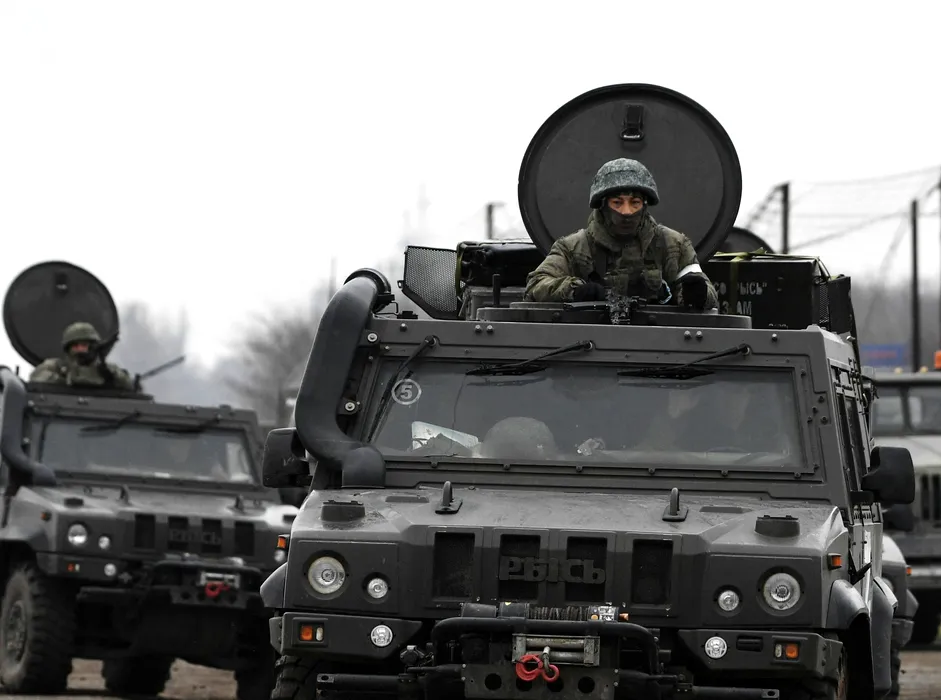 8125961 25.02.2022 Russian servicemen ride armored vehicles in Armyansk in the northern part of Crimea, Russia. On February 24 Russian President Vladimir Putin announced a military operation in Ukraine following recognition of independence of breakaway Donbas republics.. Konstantin Mihalchevskiy / Sputnik