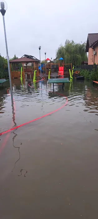 INUNDAȚII în județul Arges. Codul portocaliu de ploi a adus cantități mari de apă și mai multe subsoluri, magazine și gospodării au fost afectate