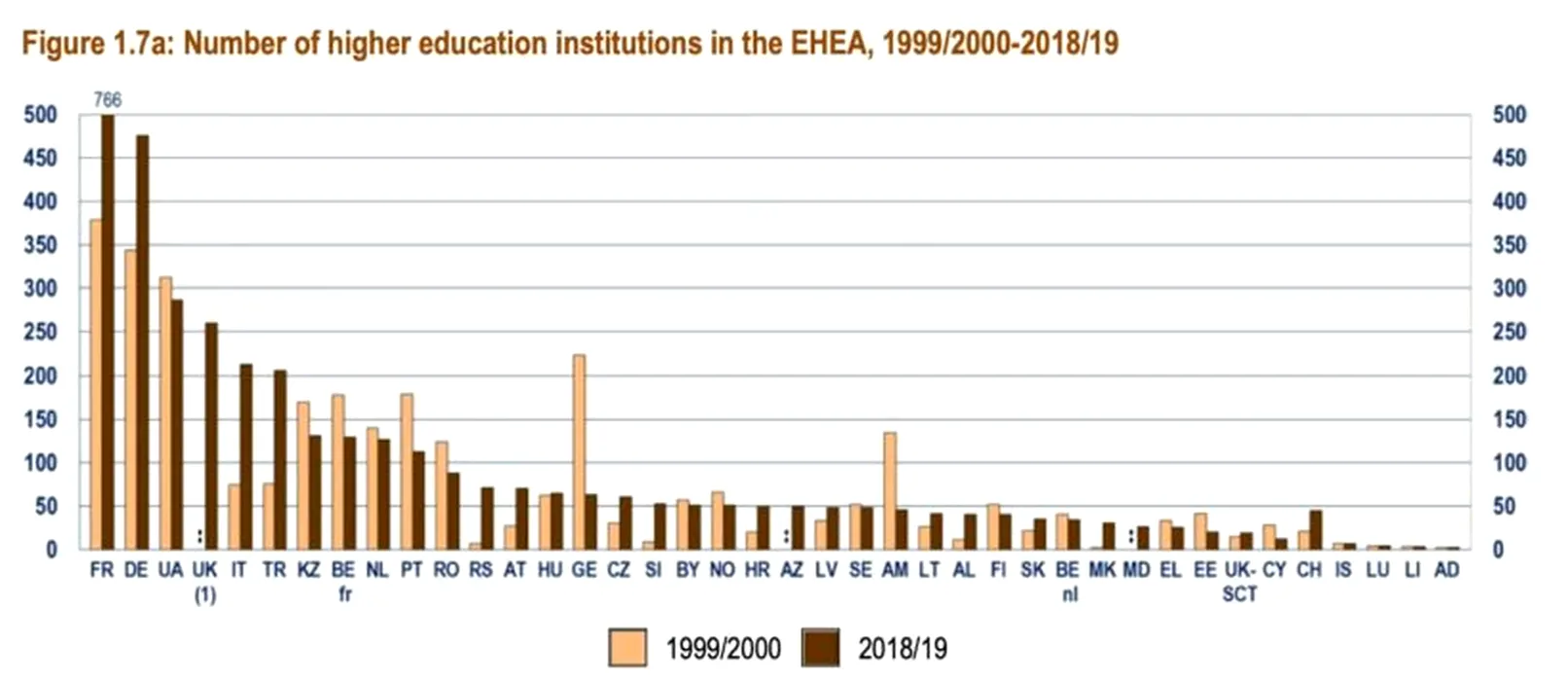 Învățământul superior, la pământ: România, pe ultimele locuri din Europa privind rata de înscriere la universitate și personalul academic (RAPORT) / Sursa foto - Raport Bologna 2020