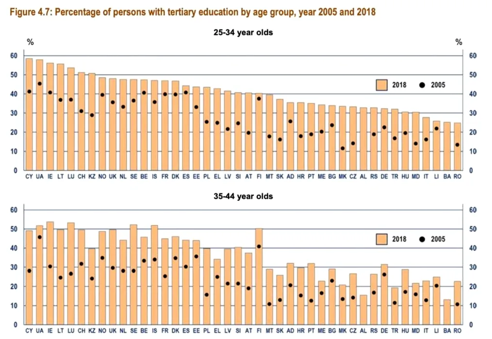 Învățământul superior, la pământ: România, pe ultimele locuri din Europa privind rata de înscriere la universitate și personalul academic (RAPORT) / Sursa foto - Raport Bologna 2020