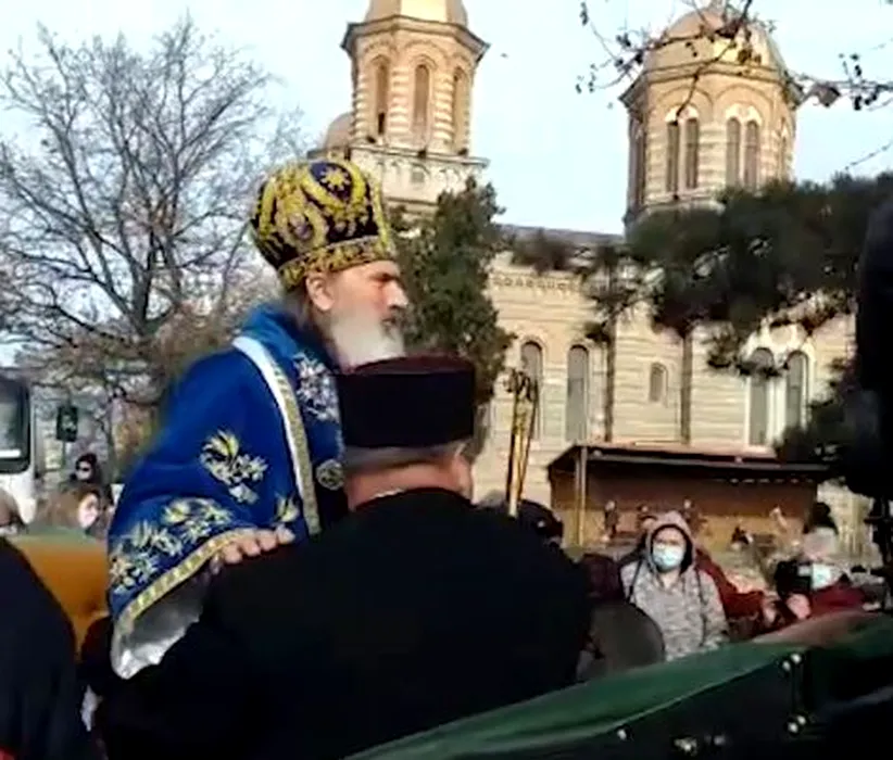 ÎPS Teodosie, dus cu caleașca la Portul Tomis, pentru a arunca în apă crucile din lemn. Doi preoți l-au ținut tot timpul în brațe / FOTO