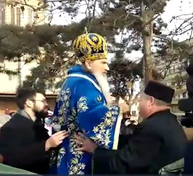 ÎPS Teodosie, dus cu caleașca la Portul Tomis, pentru a arunca în apă crucile din lemn. Doi preoți l-au ținut tot timpul în brațe / FOTO