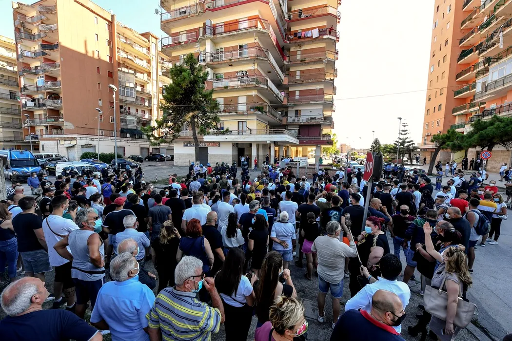GALERIE FOTO: ITALIA. Protest al localnicilor dintr-un oraș din apropiere de Napoli după ce mai mulți migranți, majoritatea est-europeni, au fost diagnosticați cu COVID-19. GALERIE FOTO