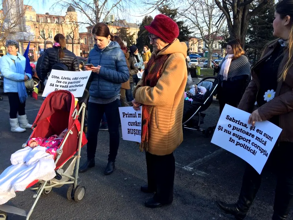 Jandarmii au împărțit bomboane copiilor și au primit flori la protestul mămicilor din Constanța