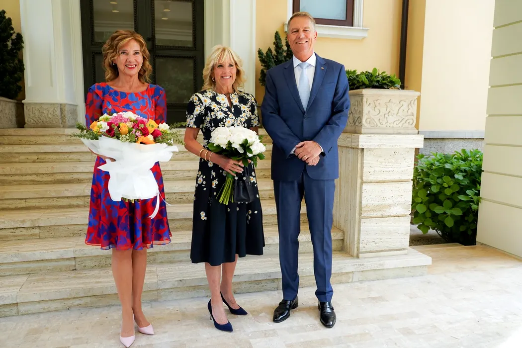 GALERIE FOTO | Jill Biden s-a întâlnit cu Carmen Iohannis. Ținutele primelor doamne au stârnit un val de ironii pe Facebook: „Zici că e poza de la Casa de Cununii Sector 6”