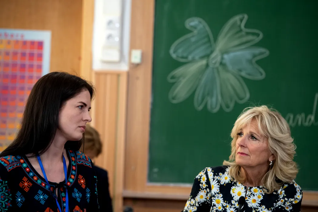 GALERIE FOTO | Jill Biden s-a întâlnit cu Carmen Iohannis. Ținutele primelor doamne au stârnit un val de ironii pe Facebook: „Zici că e poza de la Casa de Cununii Sector 6”