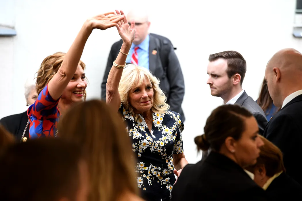 GALERIE FOTO | Jill Biden s-a întâlnit cu Carmen Iohannis. Ținutele primelor doamne au stârnit un val de ironii pe Facebook: „Zici că e poza de la Casa de Cununii Sector 6”