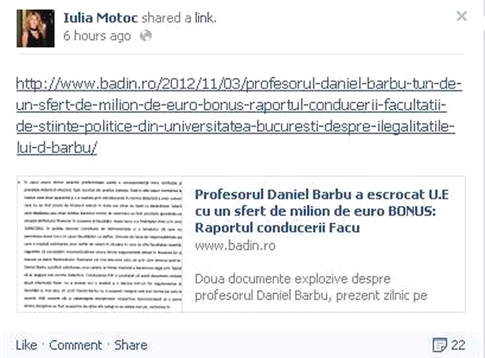 Judecătoarea CCR Iulia Motoc organizează pe Facebook o discuție despre AMANTA UNUI PROFESOR CANDIDAT LA PARLAMENTARE. UPDATE: Motoc revine cu nume