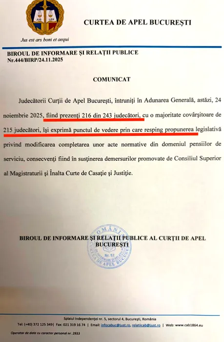 Judecătoarea Raluca Moroșanu, „eroina” și protestatara de la Curtea de Apel, este singurul magistrat al instanței din totalul de 243 care a votat „pentru” legea lui Bolojan pe pensiile magistraților