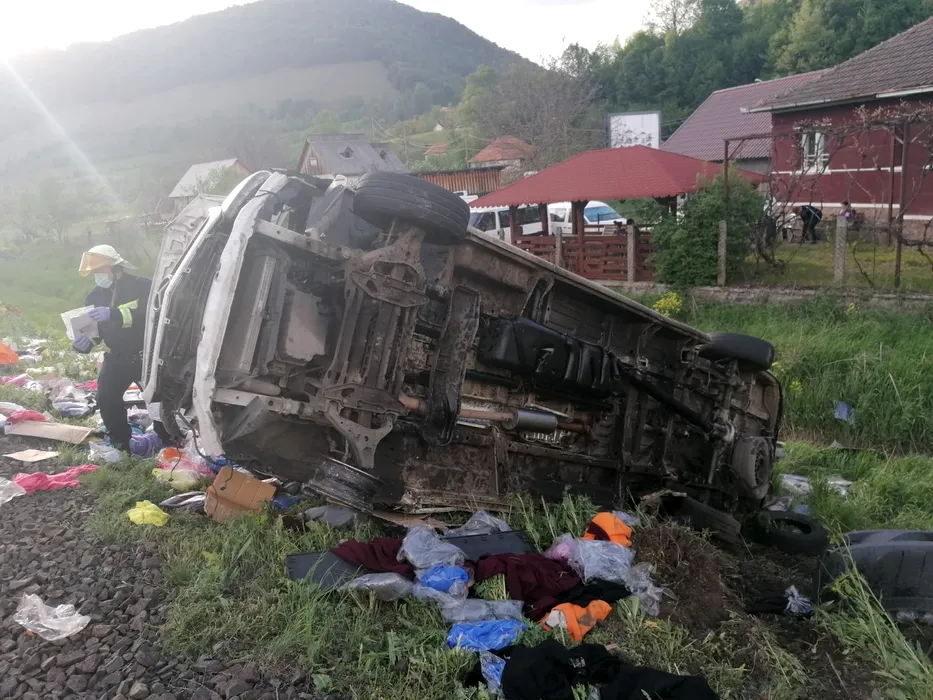 JUDEȚUL CLUJ. O dubă încărcată cu haine a fost lovită de tren / Șoferul a scăpat miraculos