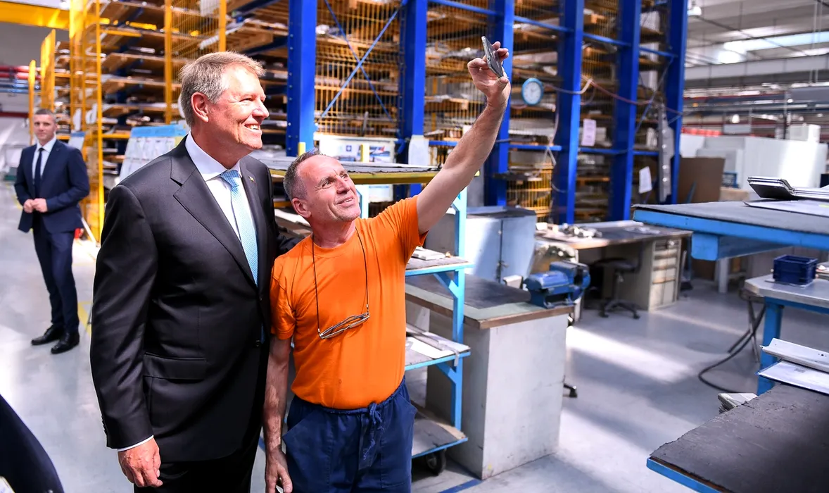 Klaus Iohannis a făcut selfie-uri cu simpatizanții, în timpul vizitei la Aerostar. Ipostazele inedite în care a fost surprins președintele