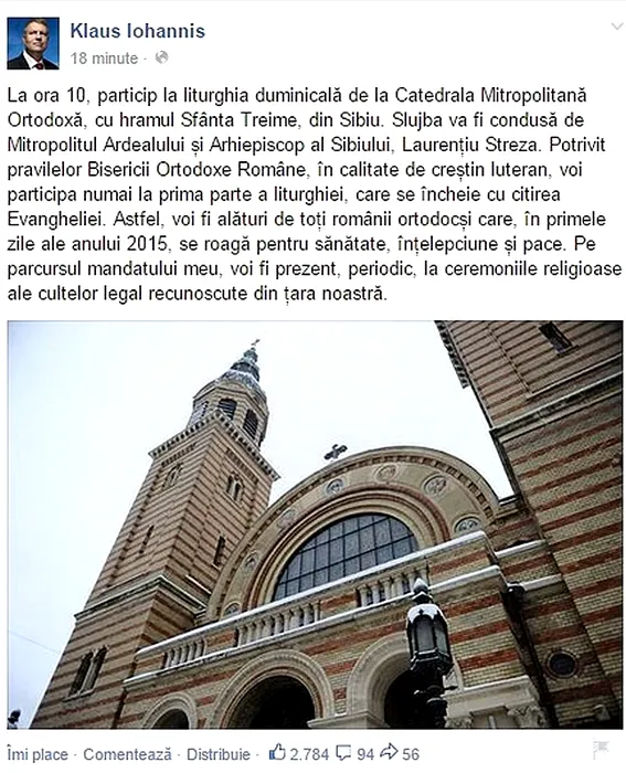 Klaus Iohannis a participat duminică la liturghia ortodoxă. „Voi fi prezent, periodic, la ceremoniile religioase ale cultelor legal recunoscute”