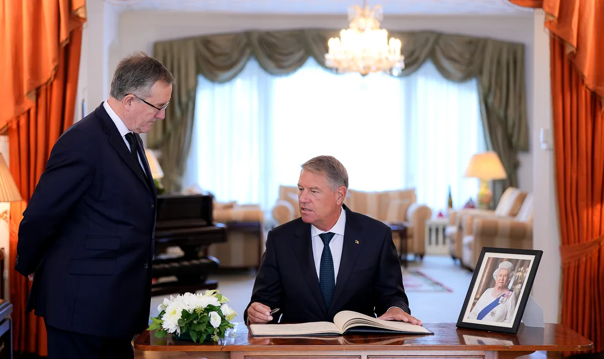 Klaus Iohannis participă la funeraliile de stat ale Majestății Sale Regina Elisabeta a II-a. Președintele a semnat în cartea de condoleanțe deschisă în memoria fostului suveran