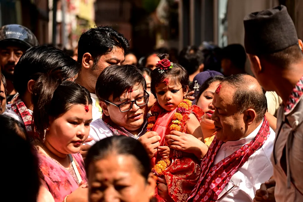 GALERIE FOTO: Kumari, fetița ZEIȚĂ întruchipată la care se prosternează nepalezii. Cum sunt alese micuțele din Himalaya pentru a fi temporar venerate