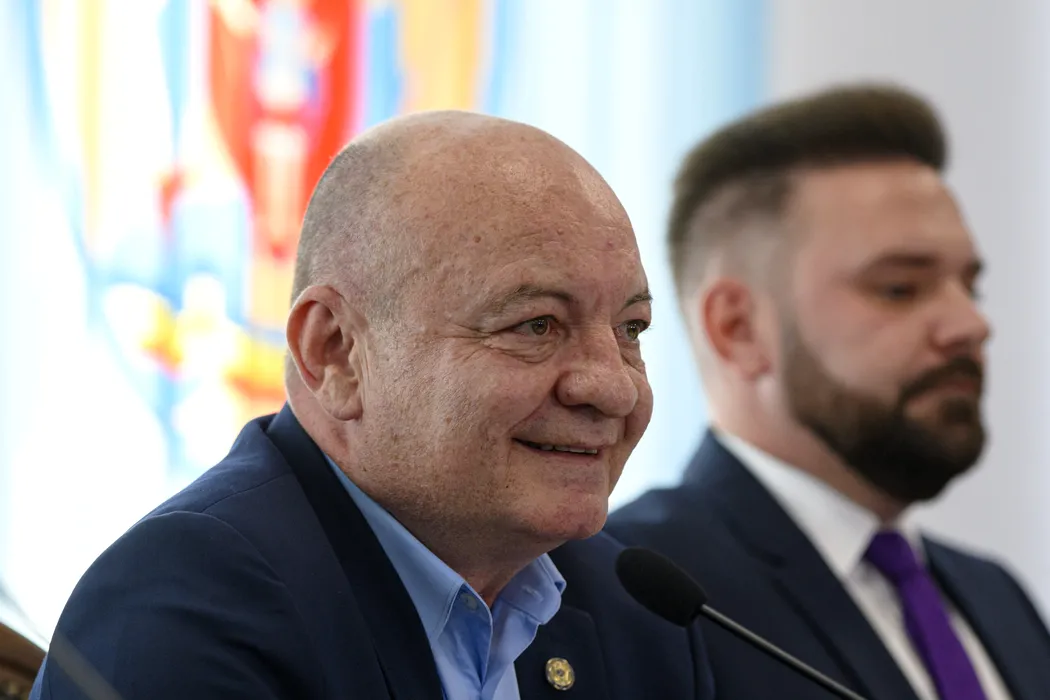 Prefectul Capitalei, Mugur- Mihai Toader, discuta cu Primarul ales al Sectorului 5, Vlad Popescu Piedone, in timpul ceremoniei de preluare a mandatului de primar si constituirea noului consiliu local, la sediul Primariei Sectorului 5, in Bucuresti, luni, 4 noiembrie 2024. ALEXANDRU DOBRE/ MEDIAFAX FOTO.