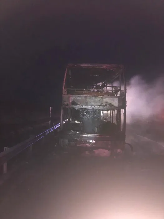La un pas de tragedie! Autocar cu 44 de pasageri, cuprins de flăcări pe A1! (GALERIE FOTO ȘI VIDEO)