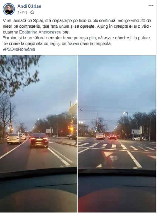 La următorul semafor trece PE ROȘU PLIN! Ecaterina ANDRONESCU, acuzată că a condus PERICULOS în traficul bucureștean