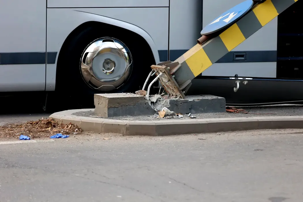 Un autocar grecesc a fost strivit de limitatorul de înălțime de la Pasajul Unirii