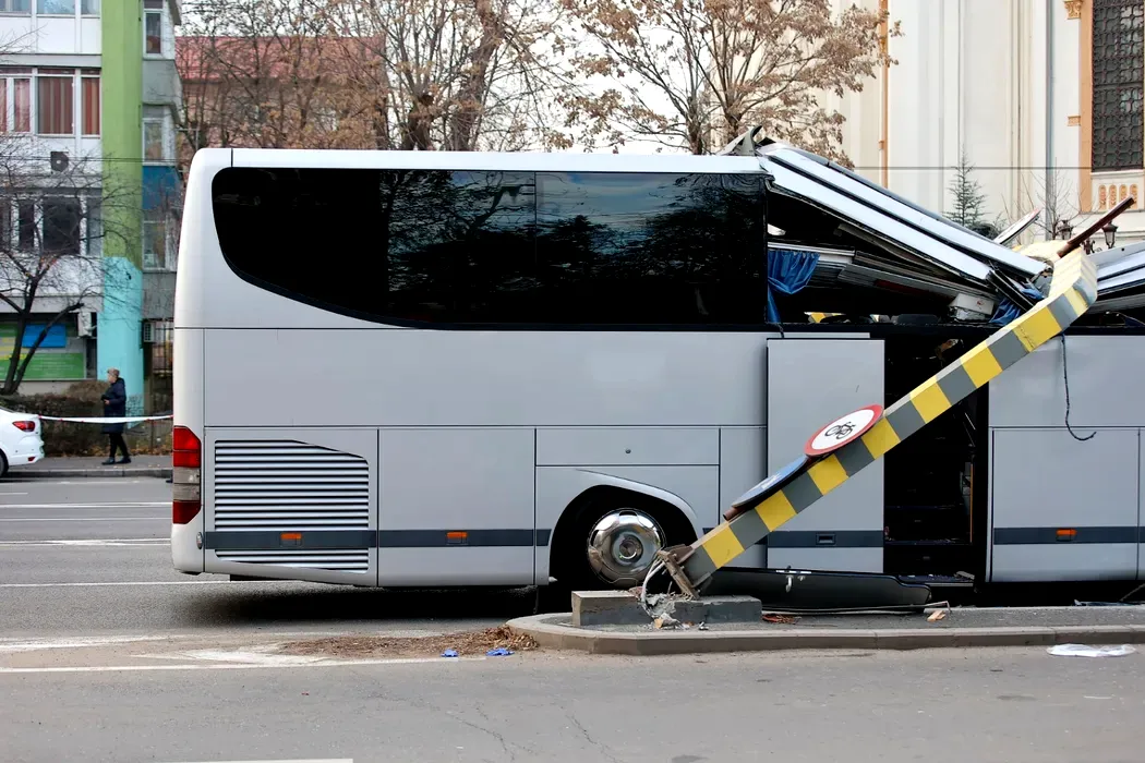Un autocar grecesc a fost strivit de limitatorul de înălțime de la Pasajul Unirii