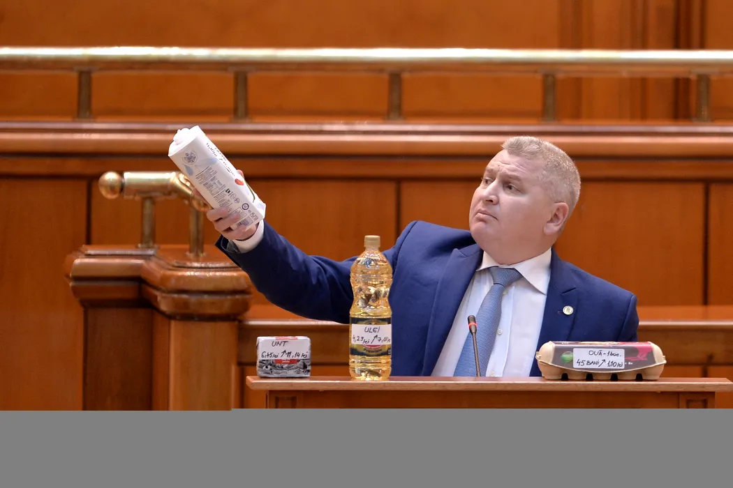 Lapte, ouă, pâine, carne și ulei la Tribuna Parlamentului în ziua moțiunii: Nu mai luați țara la mișto