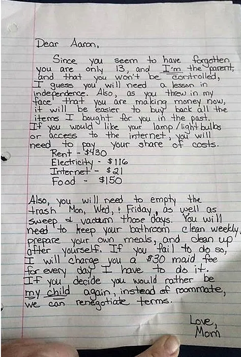 Lecția inedită dată de o mamă fiului ei care, la 13 ani, i-a spus că este independent