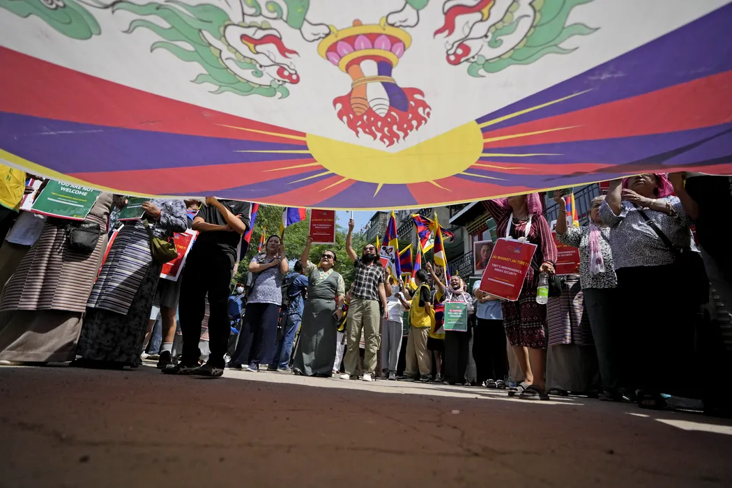 Tibetan youth activists protest against the visit of the Chinese delegation to participate in the G20 Summit in New Delhi, India, Friday, Sept. 8, 2023. (AP Photo/Channi Anand)