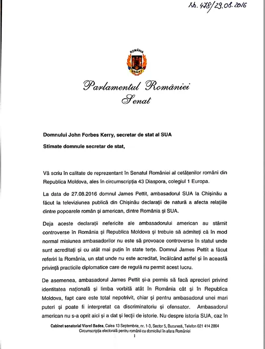 Liderul PNL Diaspora îi scrie lui Kerry. „Ambasadorul SUA la Chișinău are o poziție asemănătoare cu diplomația rusă”