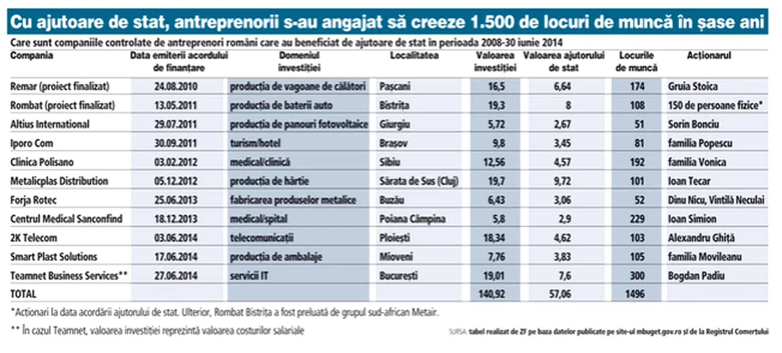 Lista companiilor care au beneficiat de ajutoare de la stat în ultimii 6 ani