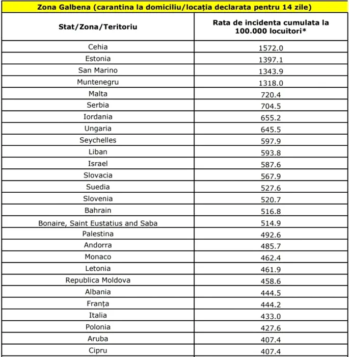 Lista țărilor din zona galbenă. Test PCR obligatoriu pentru cei care intră în România