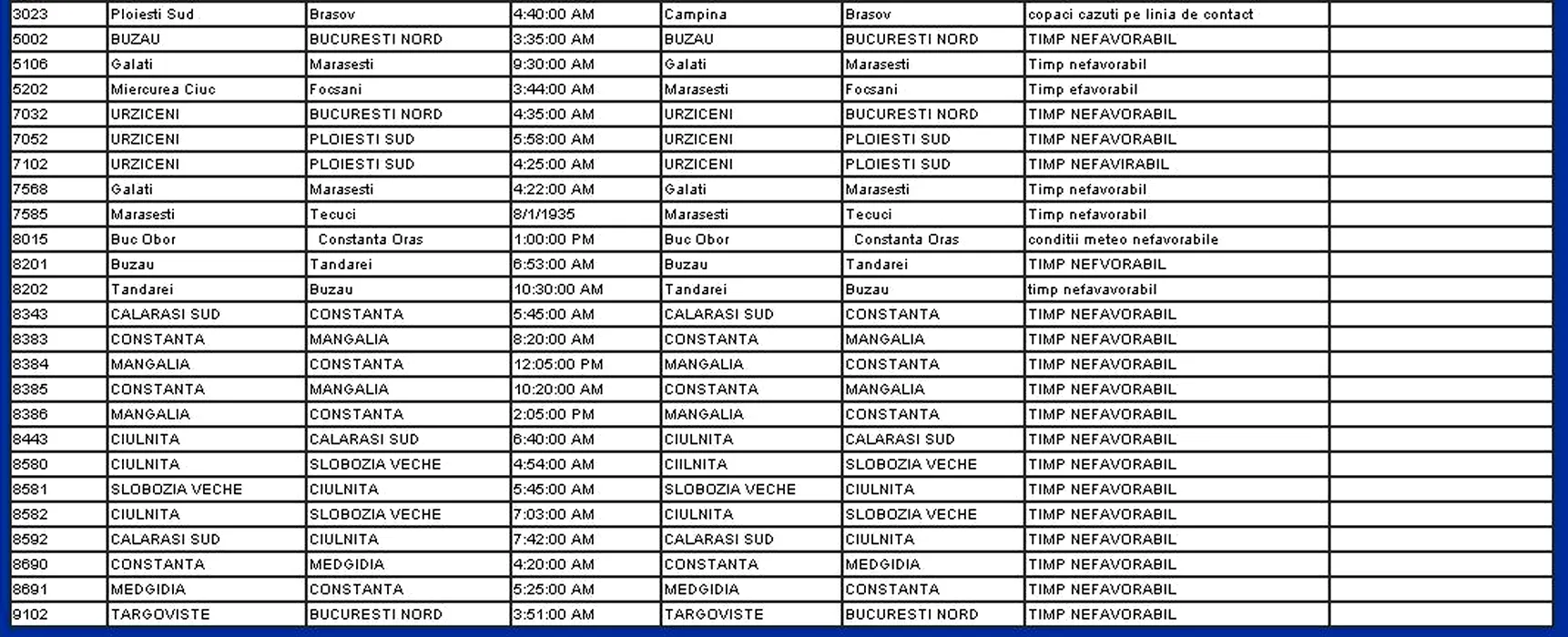 Lista trenurilor anulate, blocate și cu întârzieri