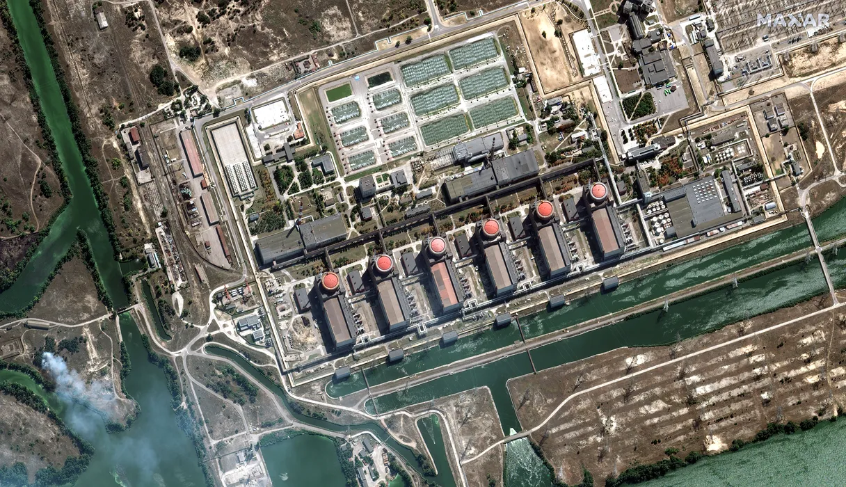 Cum arată acoperișul centralei Zaporojie, după ce a fost găurit de proiectile / Sursa foto: Twitter Maxar Technologies