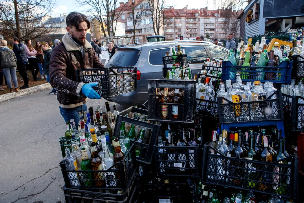 UZHHOROD, UKRAINE - FEaucraina-oameni-prepara-molotov-profimedia-1BRUARY 27, 2022 - Local residents delivers bottles for Molotov cocktails to be sent to the frontline, Uzhhorod, Zakarpattia Region, western Ukraine//UKRINFORMAGENCY_Sipa.01954/2202280804/Credit:Serhii Hudak/SIPA/2202280809,Image: 665356289, License: Rights-managed, Restrictions: , Model Release: no, Credit line: Profimedia