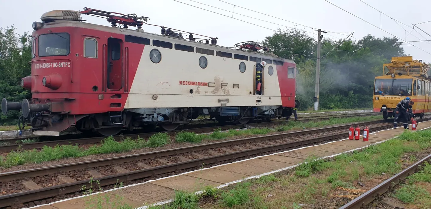 Locomotiva trenului Iaşi-Bacău a luat foc în Gara Sârca, din județul Iași. Circulația feroviară a fost întreruptă zeci de minute (FOTO)