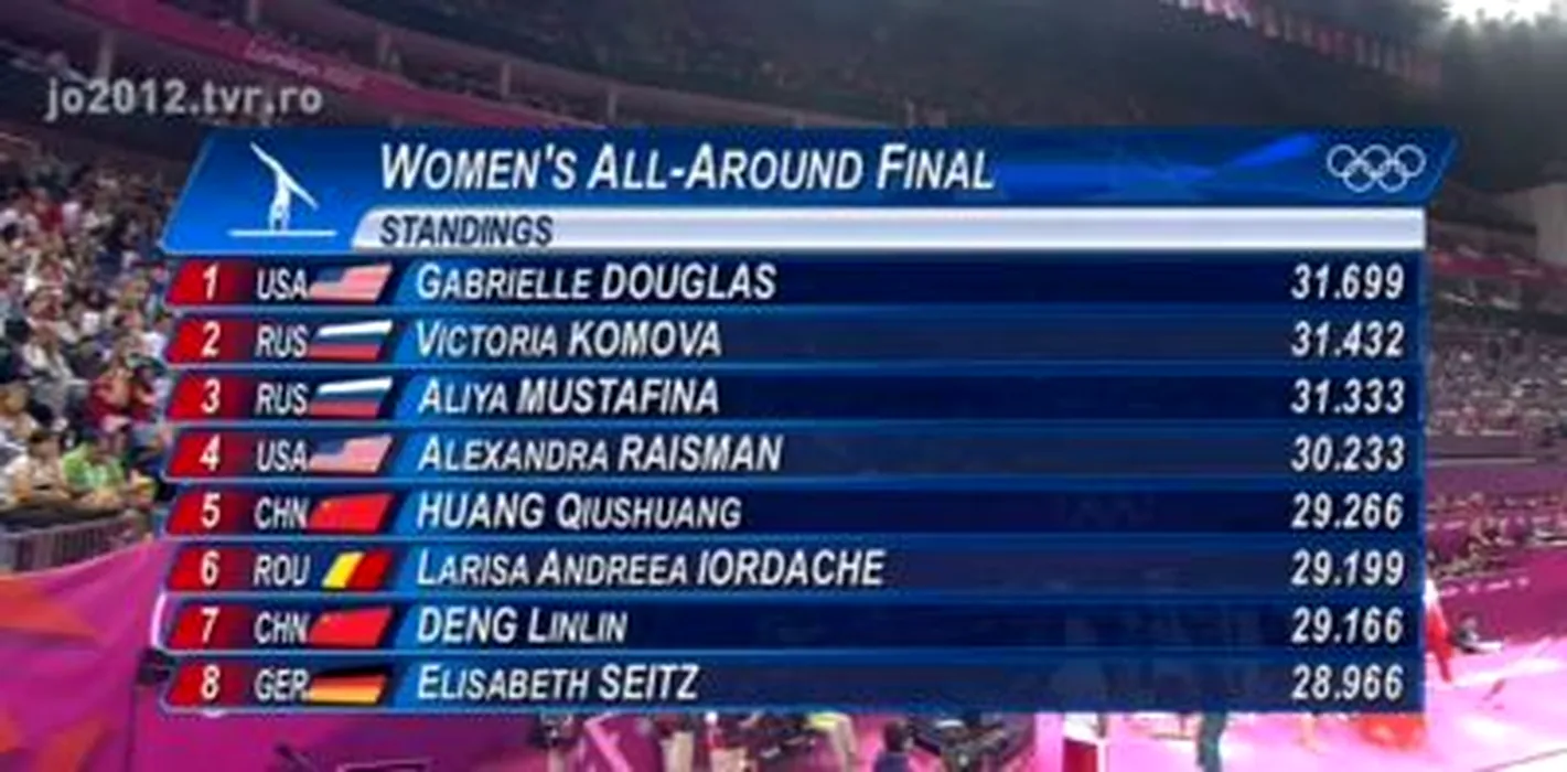 LONDRA 2012 GIMNASTICĂ. Sandra Izbașa pe 5, Larisa Iordache pe 9 la individual compus