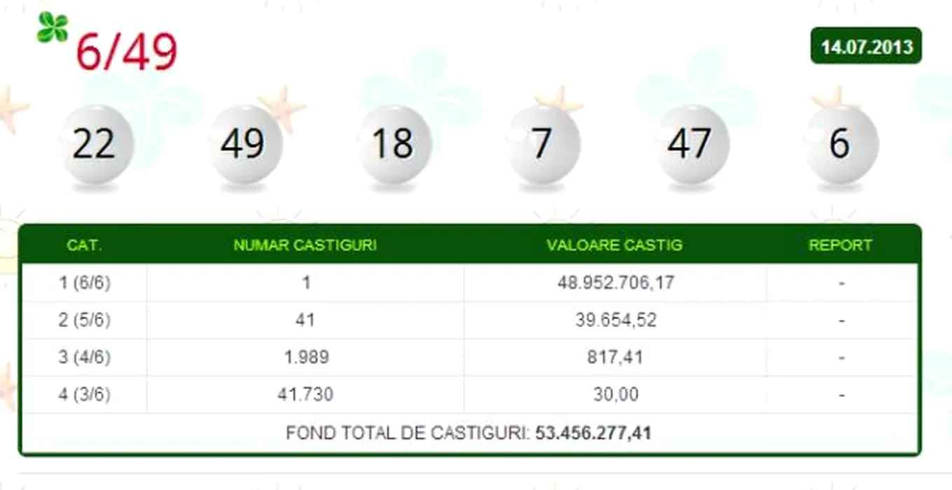 Loto 6 din 49. Marele premiu la Loto 6 din 49 a fost câștigat. Norocosul care a câștigat 11 milioane de euro este din Galați