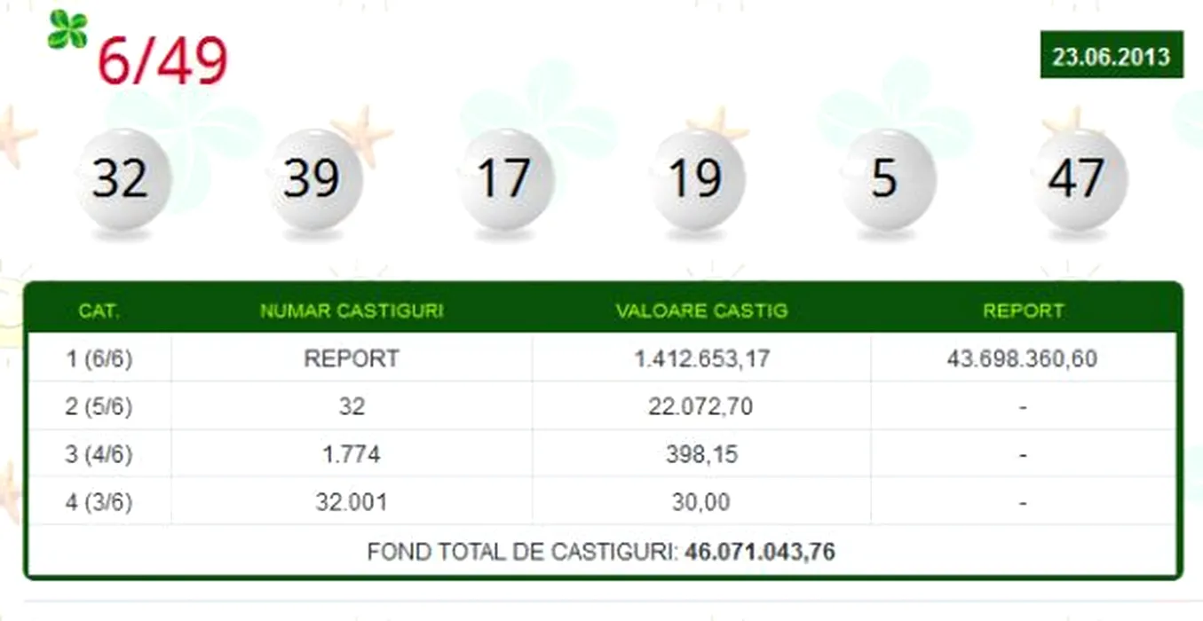 LOTO, LOTO 6 din 49. Report de peste 9,7 milioane de euro la LOTO 6 din 49. Numerele extrase pe 23 iunie, la LOTO