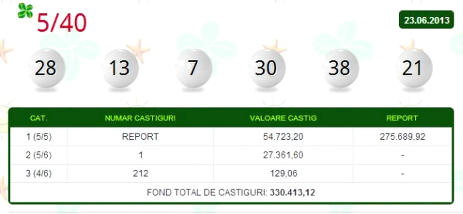 LOTO, LOTO 6 din 49. Report de peste 9,7 milioane de euro la LOTO 6 din 49. Numerele extrase pe 23 iunie, la LOTO