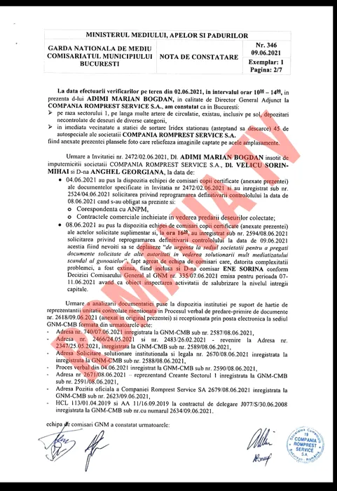 Lovitură pentru Clotilde Armand. Comisarii Gărzii Naționale de Mediu desființează acuzațiile Primăriei Sectorului 1 în scandalul cu Romprest | DOCUMENT