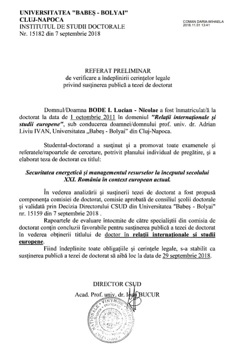 Ministrul de Interne Lucian Bode, după verdictul UBB: Teza mea de doctorat este în regulă, iar titlul de doctor este menţinut / Voi revizui erorile din șapte pagini