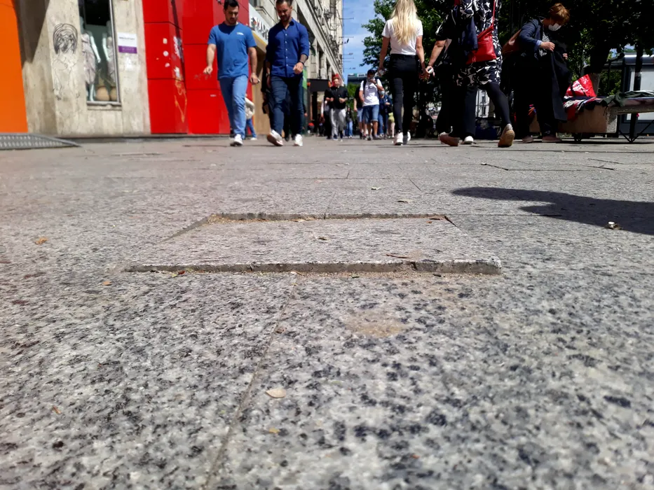 Lucrare făcută în bătaie de joc. La doi ani de la „reabilitare”, trecătorii se împiedică de plăcile montate pe trotuarul de la Piața Unirii | FOTO – VIDEO