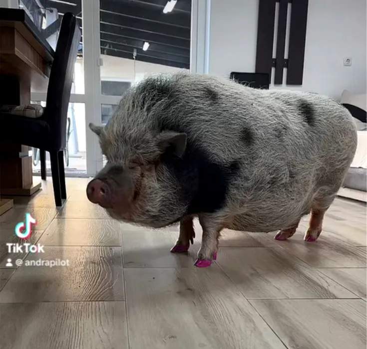 Luna de la Satu Mare, singura purcelușă din România care are pedichiura făcută. În fiecare seară, beneficiază de un ritual de înfrumusețare