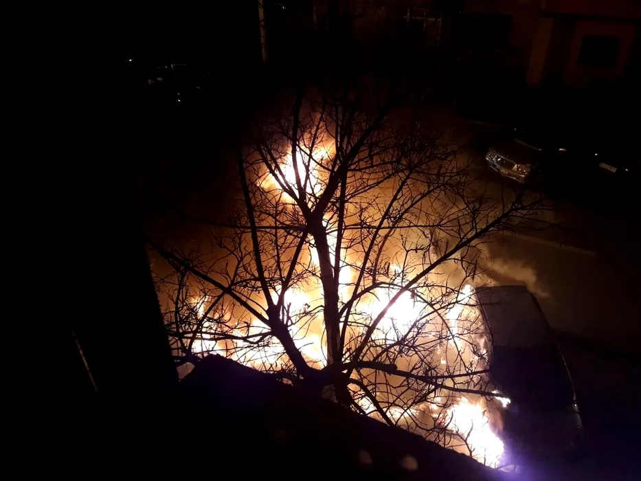 Mai multe mașini au fost făcute scrum, în parcarea din fața blocului