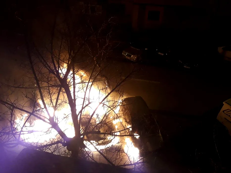 Mai multe mașini au fost făcute scrum, în parcarea din fața blocului