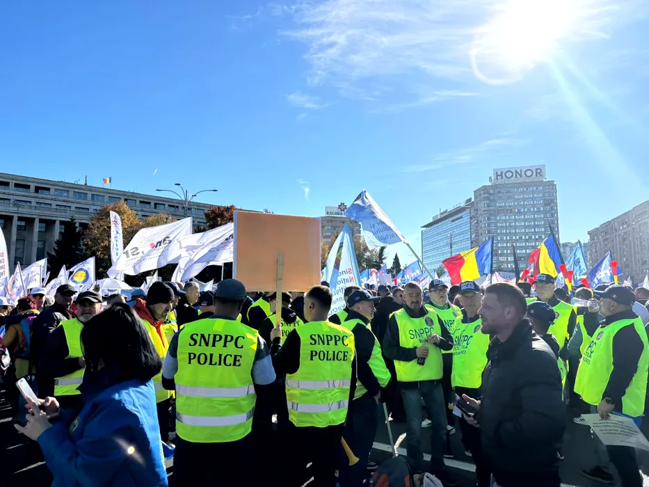 Mai mulți bărbați, aflați în aproprierea mitingului din Piața Victoriei, percheziționați de jandarmi. Un briceag și o lamă găsite asupra lor
