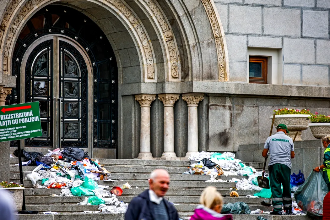 Protest la Primăria Sectorului 1. Mai mulți locuitori au lăsat saci cu gunoi pe scările instituției (FOTO)