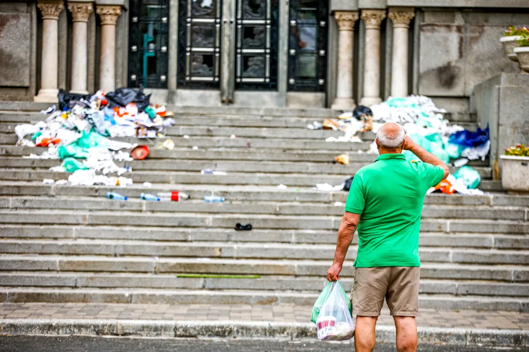 Protest la Primăria Sectorului 1. Mai mulți locuitori au lăsat saci cu gunoi pe scările instituției (FOTO)